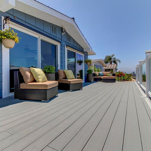 Advanced PVC is the most realistic wood looks that also offer unparalleled performance. TimberTech® Advanced PVC is made using proprietary materials technology. This highly durable type of plastic is manufactured without producing toxins or waste. More sustainable than wood, PVC decking is made from up to 60% recycled material. The difference from traditional composite decking is the material composition. Unlike composite, Advanced PVC is made with zero organic material, like wood flour, which makes it highly resistant to moisture damage like mold, mildew, and rot. And thanks to the advanced color technology, no two boards look exactly alike for an authentic wood look.